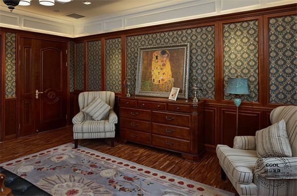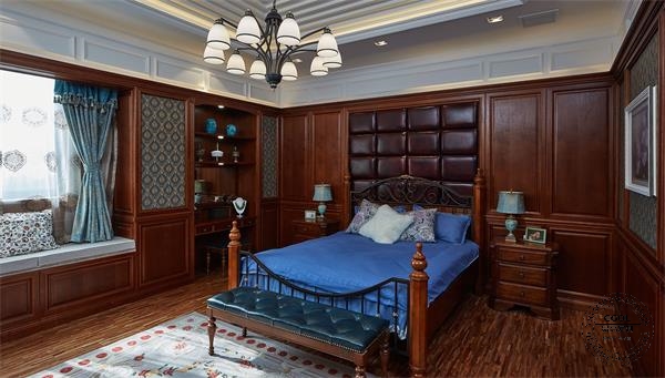 美式以自由開放為特點,在家具上也表現的淋漓盡致。實木顏色穩重大氣,搭配實木黑色鐵藝床恰到好處。護墻板是美式的一大特征之一,易高這款產品將護墻板、飄窗、梳妝臺連接起來,風格和諧不顯突兀。