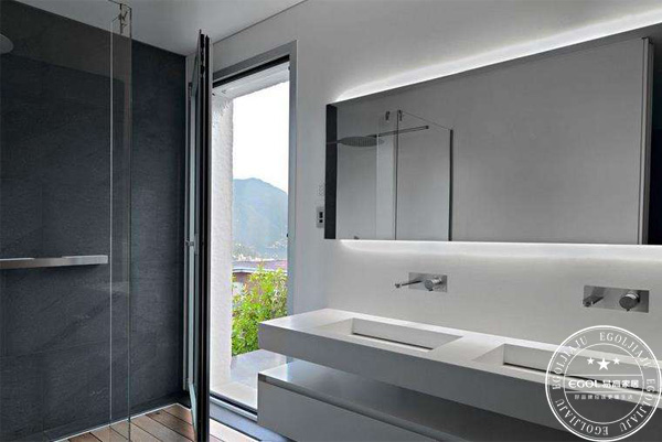1. 衛生間洗漱臺設計。清晨起床大多都會先進行一番洗漱,人數較多的家庭一般都會選擇排隊挨個進行,甚至有些家庭因為實在來不及選擇在廚房或者陽臺洗漱。針對這種情況,在裝修時我們可以定制帶有兩個洗漱盆的洗漱臺。兩個小小的洗漱盆和兩個水龍頭,可以兩個人同時使用,既不會浪費空間,又能減少整個家庭排隊洗漱時間。在洗漱臺上可以選擇定制鏡柜,這樣就在解決整理儀容問題的同時,也解決了全家成員牙膏牙刷護膚等個人用品的收納問題。另外,在鏡柜的上方建議安裝鏡前燈。經常在衛生間化妝的女士應該都知道,照鏡子時,頂上的燈光剛好被人體擋住,有了鏡前燈,不管是女士們化妝還是男士剃胡須,都會更加方便。