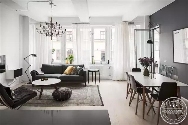 家居色彩的選擇上,可以偏向淺色,例如白色、米色、淺木色、淺灰色等。常常以白色為主調(diào),使用鮮艷的純色為點綴;或者以黑白灰為主調(diào),不加入其它任何顏色。空間給人的感覺大氣明朗,絕無雜亂之感。如果你覺得色系過于單一而有寒冷的感受,不妨注入幾種亮色的點綴,例如明黃與亮藍的抱枕和簡單的小飾物,燈具選擇也可以選擇暖色調(diào)燈光,營造活潑溫馨的感覺。
