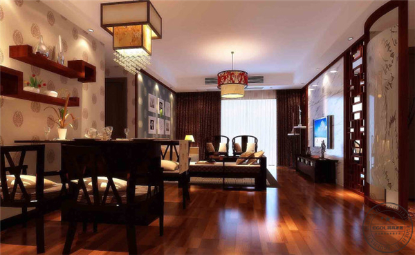 新中式風格非常講究空間的層次感與跳躍感。在需要隔絕視線的地方,則使用中式的屏風、窗欞、中式木門、工藝隔斷、簡約化的中式“博古架”等。通過這種新的分隔方式,單元式住宅就展現出中式家居的層次之美。再配以一些簡約的造型為基礎,添加了中式元素,使整體空間更加豐富,大而不空、厚而不重,有格調又不顯壓抑。