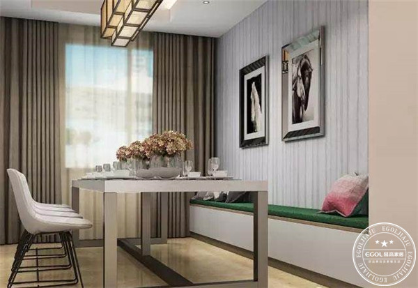 如果是現代化的裝修設計,可將餐廳設置成現代化的家庭餐廳設計。卡座式餐廳不僅限于面積小的餐廳,大空間的餐廳也一樣可以借鑒,比如中式餐廳采用卡座式設計,反而會達到很好的居家裝飾效果。在進行卡座式的餐廳裝修設計時,其裝修風格與色彩一定要與整體的裝修風格相協調。利用對墻面的設計讓整體的裝修風格更加的強化。