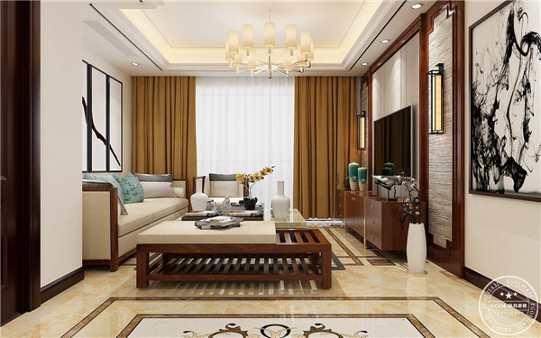 客廳是傳統(tǒng)與現(xiàn)代居室風(fēng)格的碰撞表現(xiàn)的最大平臺(tái),設(shè)計(jì)師以現(xiàn)代的裝飾手法和家具,裝飾元素由中式古典結(jié)合而成,呈現(xiàn)出了古今相融的空間氛圍。既發(fā)揮了生活的實(shí)用性,也對在高速發(fā)展的科技生活中不丟失傳統(tǒng)文化的追求,影視墻、沙發(fā)背后墻的醒目位置裝飾以中式風(fēng)格作品為主,這種巧妙的組合給人以強(qiáng)烈、舒適的視覺享受,完美地成為時(shí)尚與古典的柔媚結(jié)合體。