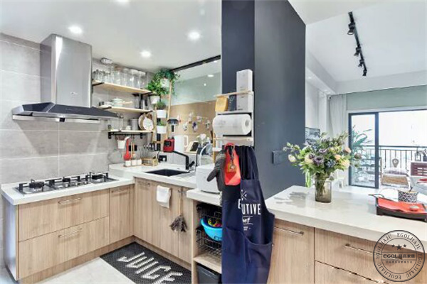 2、擴大了廚房的門洞形成開放式廚房,造了一個島臺,形成餐廚一體;