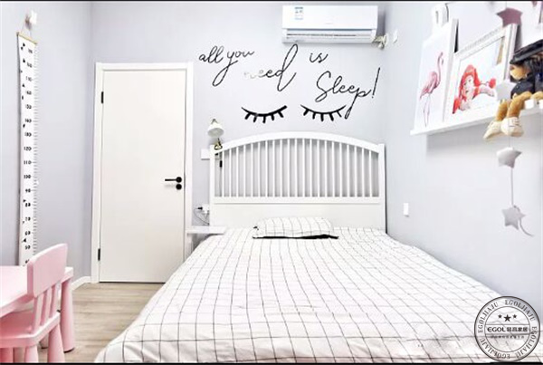9平米的兒童房直接擺放一張網紅床;床尾預留有一個帳篷區,差不多1.1米*1.1米的大小,方便孩子在里面躲貓貓。