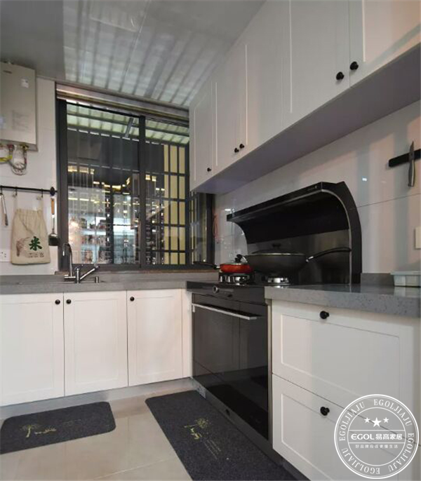 原先廚房大理石做的,感覺很單薄;家居設(shè)計(jì)師果斷建議換成整體定制櫥柜,美觀實(shí)用兩不誤!