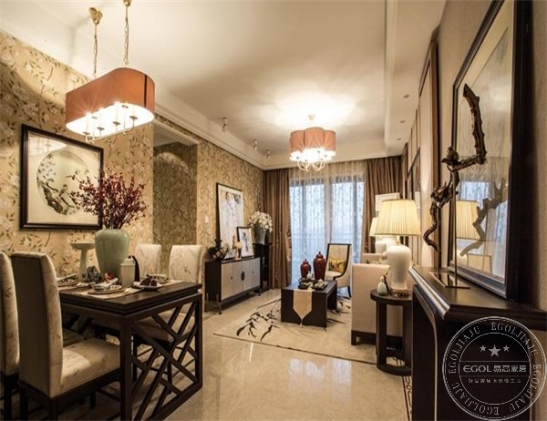 融合了中華民族傳統文化和現代流行元素的完美結合,展現了新中式的高貴雅致和輕松自然的韻味,濃厚的文化氣息,營造出一種修身養性的美,不同的傳統飾品在空間中起到了畫龍點睛的作用。