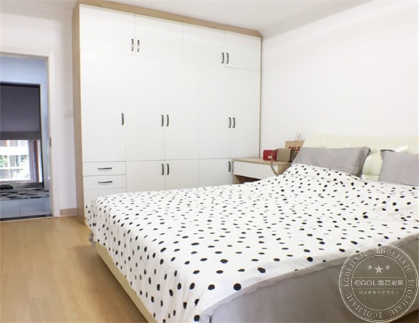 臥室采用了現(xiàn)代簡約風的設計,搭配原木色系的木地板,光線充足,床頭的兩邊柜雖然大件的物品放不下,但還是能夠收納很多零零散散的物品。這樣的設計營造出北歐風特有的自然舒適之感,讓居住者倍感溫馨。