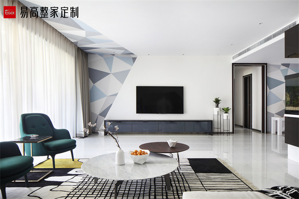 1、客廳布局設(shè)計,沒有孩子客廳的布局通常都是電視茶幾等常規(guī)的布局,有了孩子以后需要有足夠的空間來豐富親子交流,孩子又容易磕磕碰碰,所以可以去掉茶幾,換成簡便的邊幾,留出足夠的空間來打造小孩子的互動型客廳。小孩子的成長需要不斷的學習,如果覺得電視可有可無,可以選擇定制書柜、展示柜等設(shè)計。讓小孩子從小有一個良好的學習氛圍。