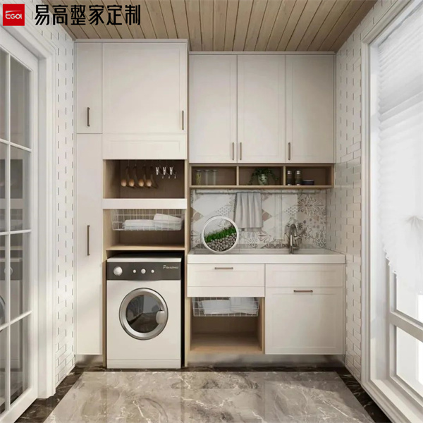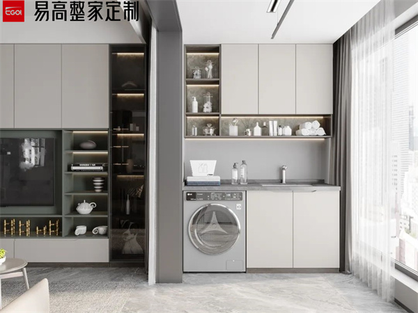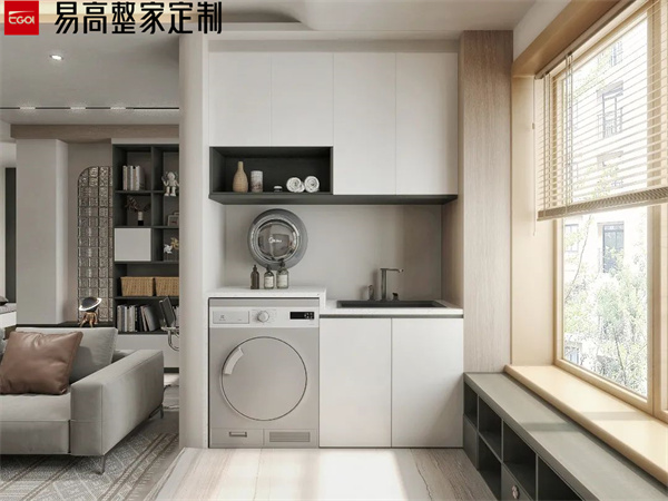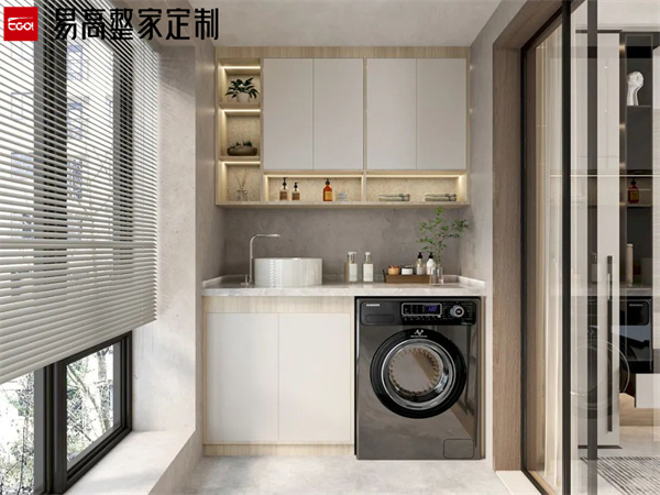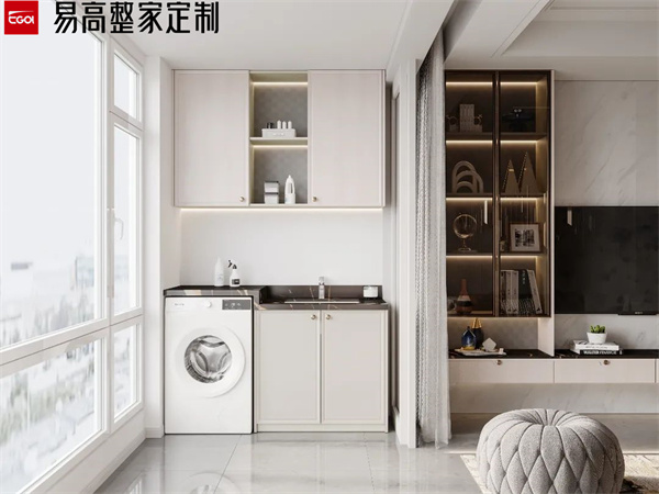 陽(yáng)臺(tái)屬于長(zhǎng)期風(fēng)吹日曬的區(qū)域,做陽(yáng)臺(tái)柜一定要注意抗曬和防水問(wèn)題。避免長(zhǎng)期陽(yáng)光直射導(dǎo)致柜門(mén)發(fā)黃、開(kāi)裂等。同時(shí),陽(yáng)臺(tái)柜的臺(tái)面也要做好防水處理,避免水漬滲入導(dǎo)致?lián)p壞。洗衣柜的材質(zhì)要選擇防潮性能好的材料,比如磚砌洗衣臺(tái)或石英石臺(tái)面等,這些材料不僅防腐耐潮,還能抗曬。