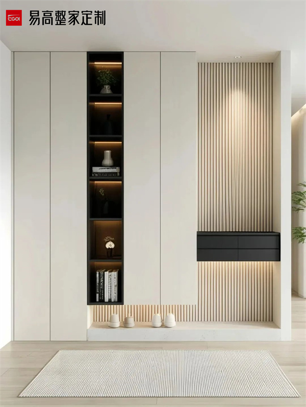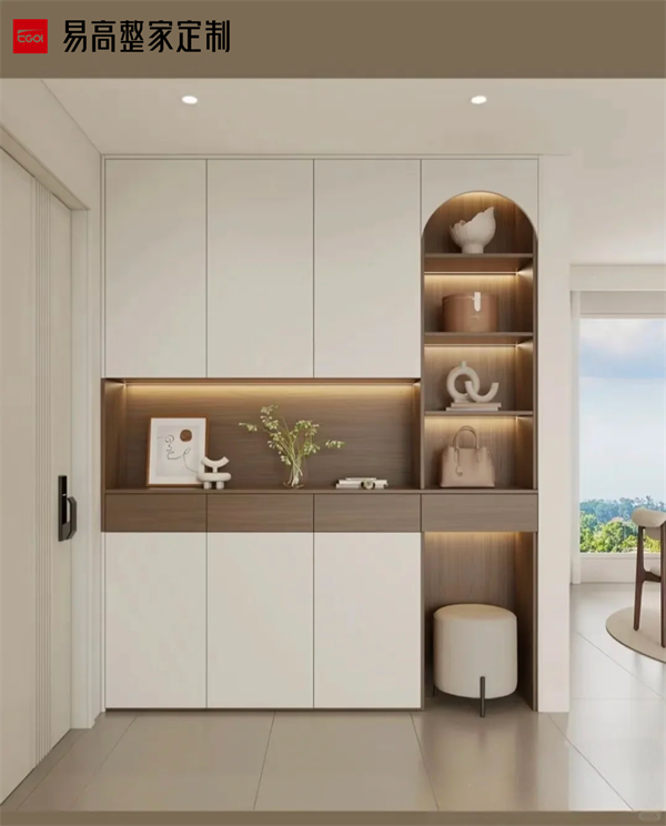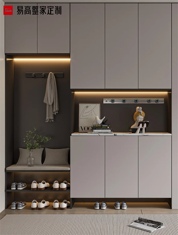 風格協(xié)調(diào)需與整體家居統(tǒng)一,例如現(xiàn)代簡約風可搭配玻璃或金屬飾條,中式風格可融入格柵透光板。若空間狹小,可采用嵌入式或壁掛式設(shè)計節(jié)省地面空間。對于有孩或養(yǎng)寵的家庭,可增設(shè)兒童物品區(qū)或?qū)櫸镉闷穼S脤影濉γ骖A(yù)留裝飾畫位置提升品位。裝飾不宜多,適度留白更能體現(xiàn)高級感。 以上就是關(guān)于如何打造一個既美觀又實用的玄關(guān)柜?一個精心設(shè)計的玄關(guān)柜,不僅能讓日常出入更加便捷有序,更能讓每次回家都成為一次愉悅的體驗。通過以上設(shè)計,玄關(guān)柜不僅能實現(xiàn)高效收納,還能成為家居的視覺焦點與情感過渡空間。好的設(shè)計不在于多么華麗,而在于能否讓生活變得更簡單、更美好。