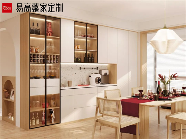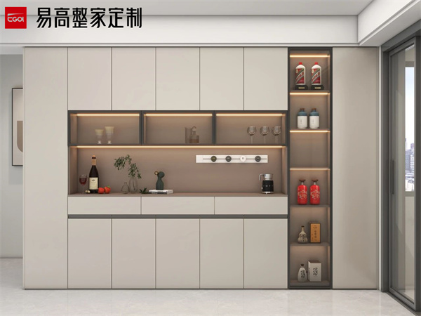 在現代家居設計中,餐邊柜不僅是餐廳的儲物利器,更是提升空間格調的重要元素。一個設計合理的餐邊柜既能滿足收納需求,又能成為餐廳的視覺焦點。然而,在有限的空間里如何打造既實用又美觀的餐邊柜呢?跟著小編來了解一下吧! 在設計餐邊柜之前,首先要明確它的主要用途。不同家庭對餐邊柜的需求各不相同,但通常包括收納功能、展示功能和操作臺功能。在收納方面,可以設計抽屜或層板存放餐具,增設酒格或恒溫酒柜滿足藏酒需求,同時利用封閉柜體收納紙巾、調味品等雜物。展示功能則可以通過開放格或玻璃柜門實現,用于擺放裝飾品、書籍或收藏的餐具。如果餐廳空間允許,還可以在餐邊柜上方預留臺面,方便擺放咖啡機、飲水機等。