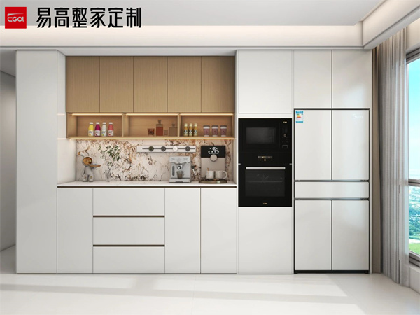 合理的布局能讓餐邊柜既節省空間又高效實用。一字型餐邊柜適合小戶型,沿墻面一字排開,采用"上柜+下柜+中間臺面"的結構,簡潔大方。L型或U型餐邊柜適用于較大的餐廳,結合轉角設計增加收納空間,搭配高柜還能嵌入冰箱或烤箱,打造多功能餐廚一體空間。嵌入式餐邊柜則利用墻體空間做內嵌式設計,視覺上更整潔,適合現代簡約或極簡風格的家居。