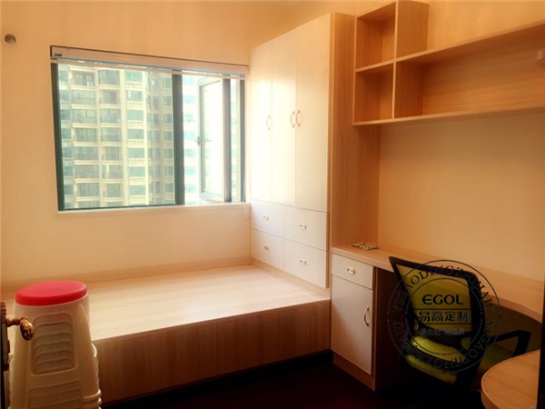 書房做的是榻榻米,榻榻米是在易高定制的,主要是合肥本土的品牌,信得過,而且價格也比較優惠。當時提供的款式方案也比較多,板材的顏色也很多,都是我自己選擇的。沒想到出來的成品效果還是很不錯的。