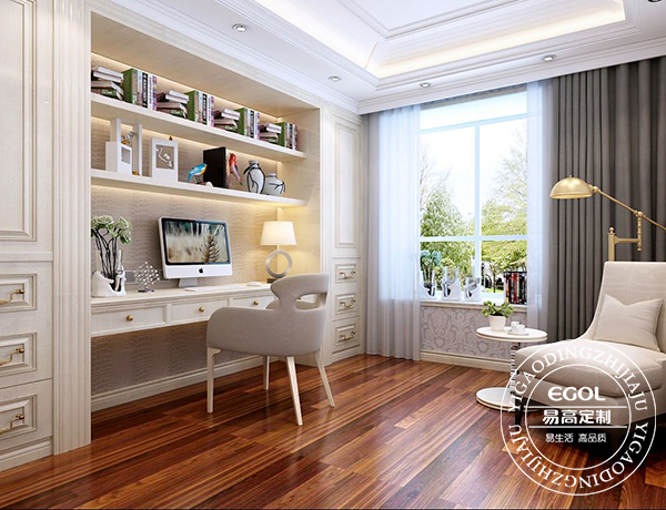 書房,是人們在休息娛樂之外的,又一個生活場所,因為其特有的功能屬性就要求書房應該是一個安靜的環境,所以當我們在裝修自家書房的時候,就應該的采用不同的方式來體現其安靜的氛圍。但是需要注意的是,過度的設計只會讓整體的書房不僅不能體現出安靜的氛圍,反而讓書房顯得冗雜而擁擠。所以在對于書房設計時,還是需要把握一個度。下面易高小編就來詳細的為大家介紹一下書房設計注意的幾點事項。