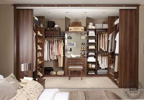 實用性:我們常見的步入式衣帽間都是不帶衣柜門,因為它們所處位置通常是在臥室內(nèi)部,臥室門阻隔了大多數(shù)灰塵,而且大多數(shù)衣帽間是U型或者L型,裝上衣柜門打開很不方便