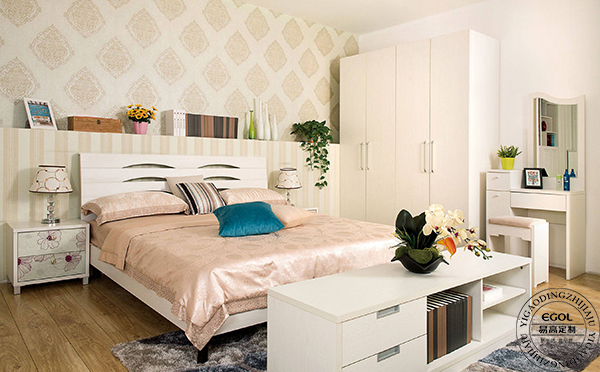 家具產品過于單調,一定要靠軟裝產品來中和下。對于床單、床罩、窗簾、門簾、枕套、沙發巾、桌布、壁掛等盡量選擇應與房間的整體色調協調一致的色彩,圖案也同樣以簡潔為好。