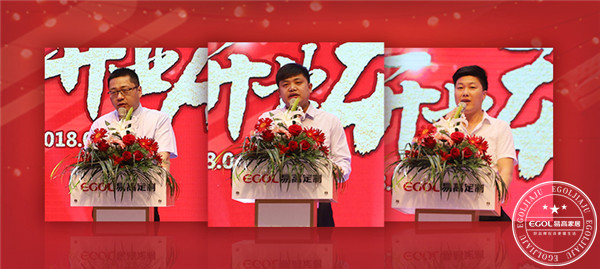 活動現場,蚌埠居然之家總經理張華先生(左一)、易高家居運營總監沈陽先生(中)、易高蚌埠店總經理李墅先生(右一)分別致辭,祝賀易高蚌埠店開業大吉。