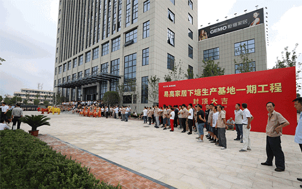 8月28日,易高家居下塘生產基地一期工程封頂儀式隆重舉行。易高家居董事長孔慶松攜供應商代表、施工方代表以及易高家居員工代表逾300人共同見證了這一歷史性時刻。