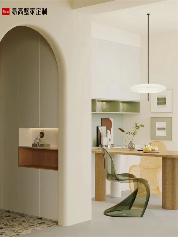 以生動鮮明的色彩解構(gòu)空間美學,開放格和懸浮式吊柜藏露有序,呈現(xiàn)錯落有致的視覺觀感,沉浸其中享受被慵懶包裹的舒適感。簡約的設計語言中埋藏著自由的伏筆,以松弛的姿態(tài)喚醒內(nèi)心深處的獨白。