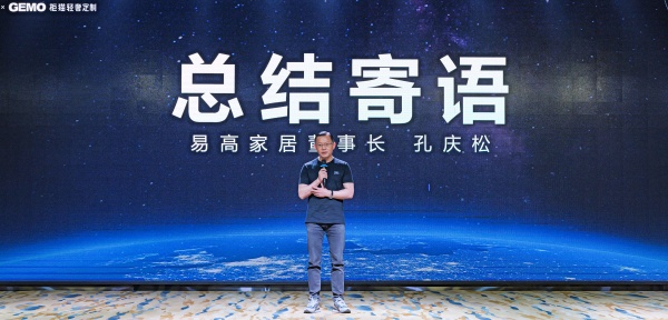 ▲易高家居董事長孔慶松發表總結講話